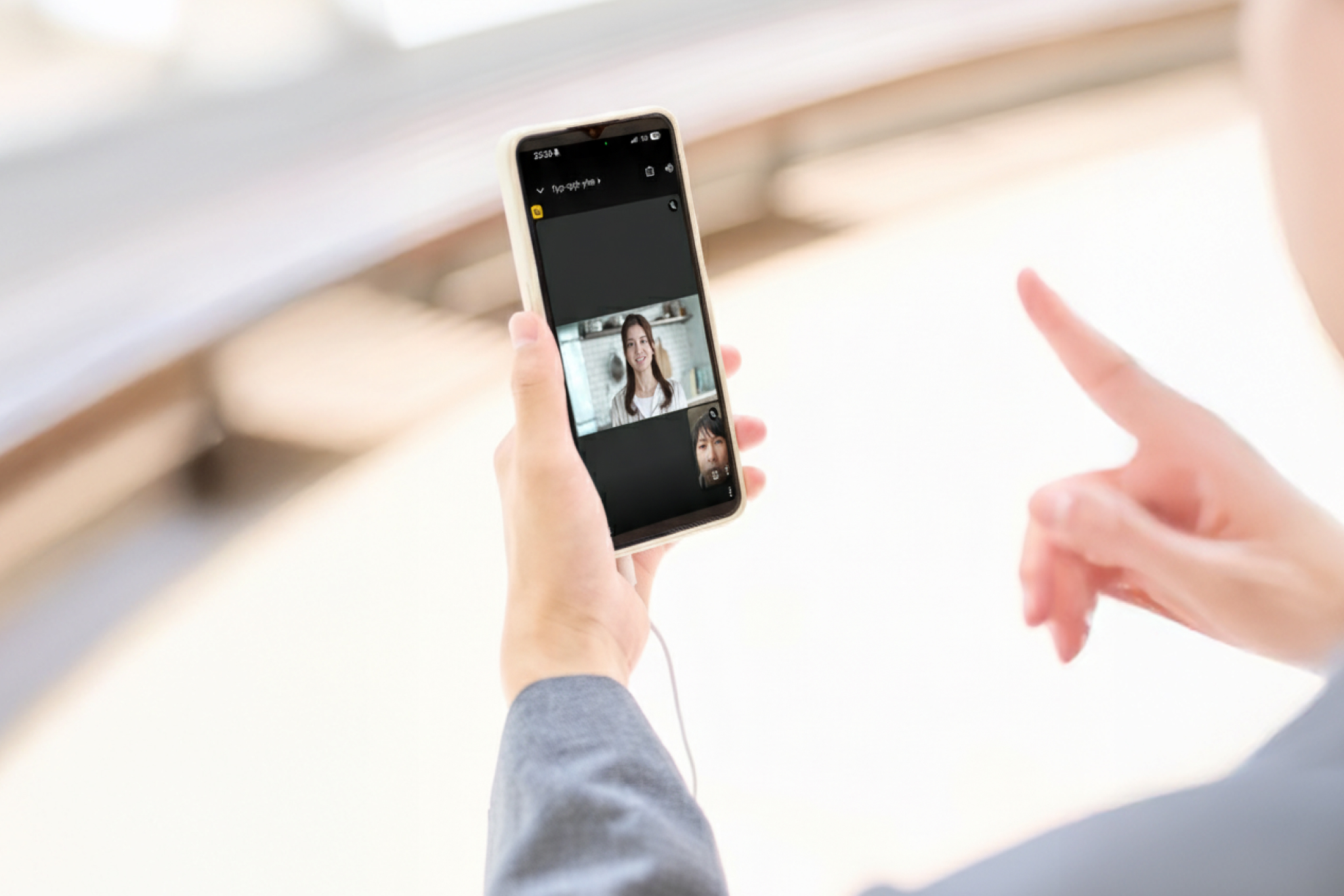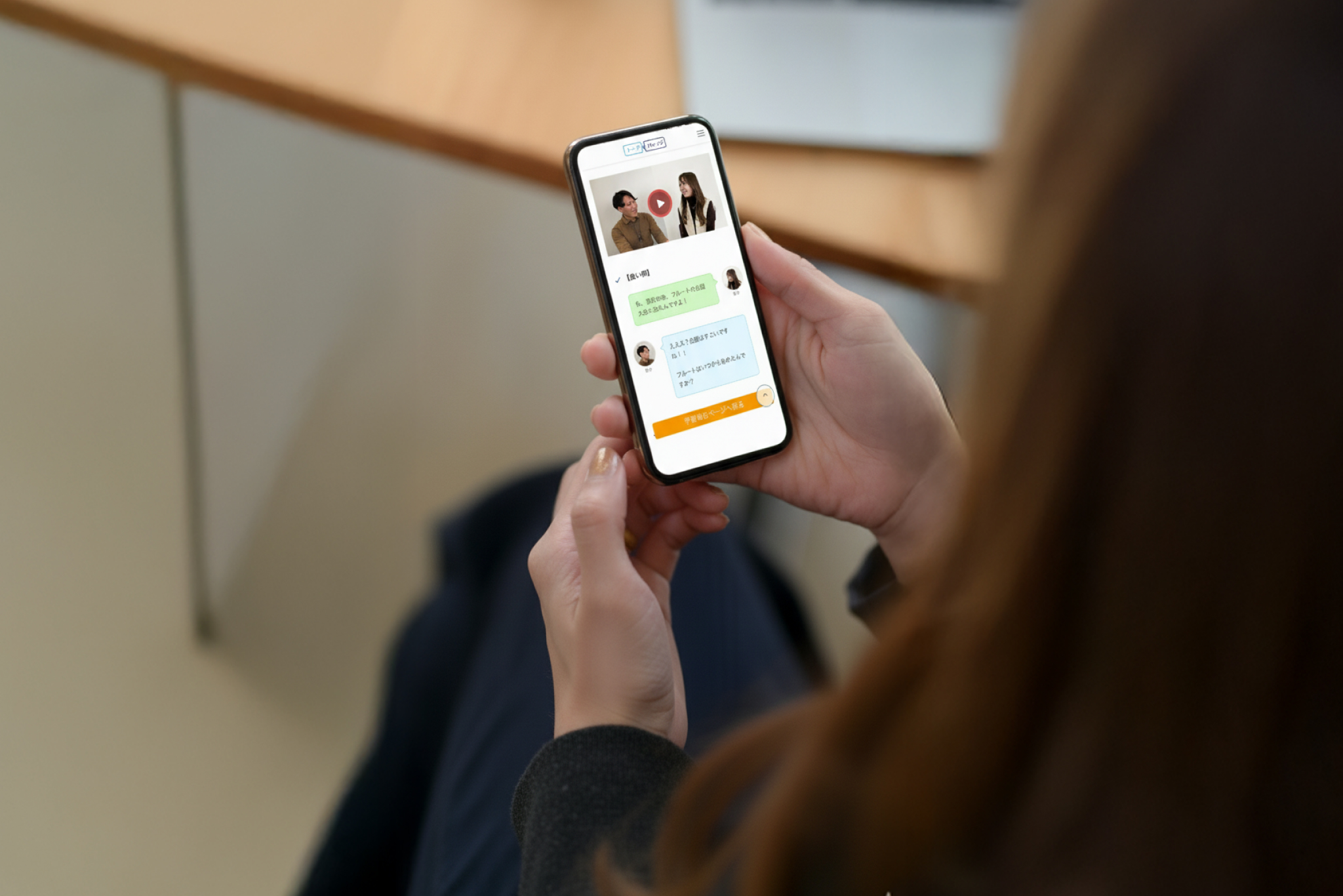 ビデオ通話で、教材で学んだことを元に実際に会話の練習をします